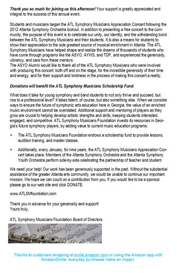 At last, our 9th Annual ATL Symphony Musicians Appreciation Concert has been rescheduled for Sunday, May 22, 3:00. Featuring members of the ATL Symphony Musicians side-by-side with past and current members of the Atlanta Symphony Youth Orchestra. Nothing can celebrate the legacy of great music better than teachers and students together again!